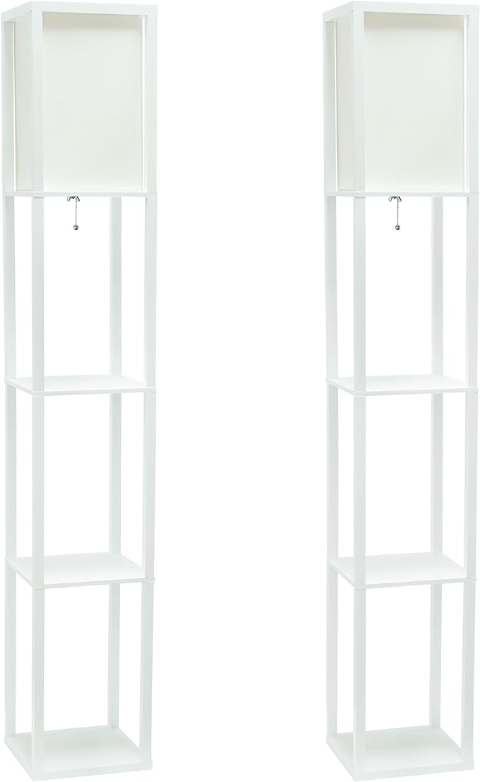 Simple Designs LF1014-WHT Etagere Organizer Storage Shelf Linen Shade Floor Lamp, White
