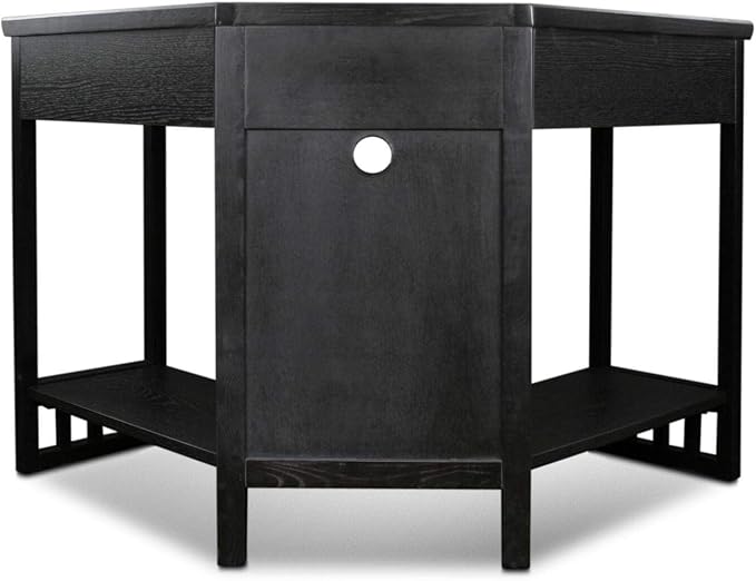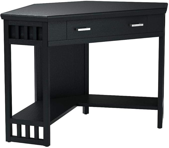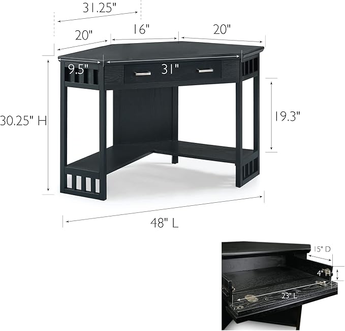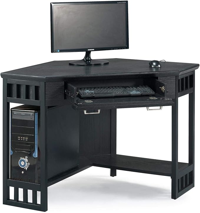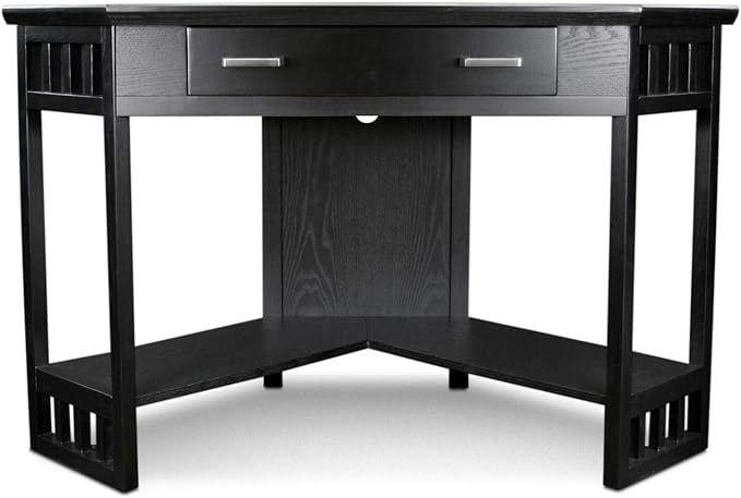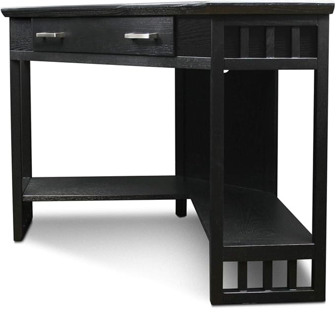 Leick Home 83430 Corner Computer/Writing Desk with Center Keyboard Drawer and Shelf, Black Oak