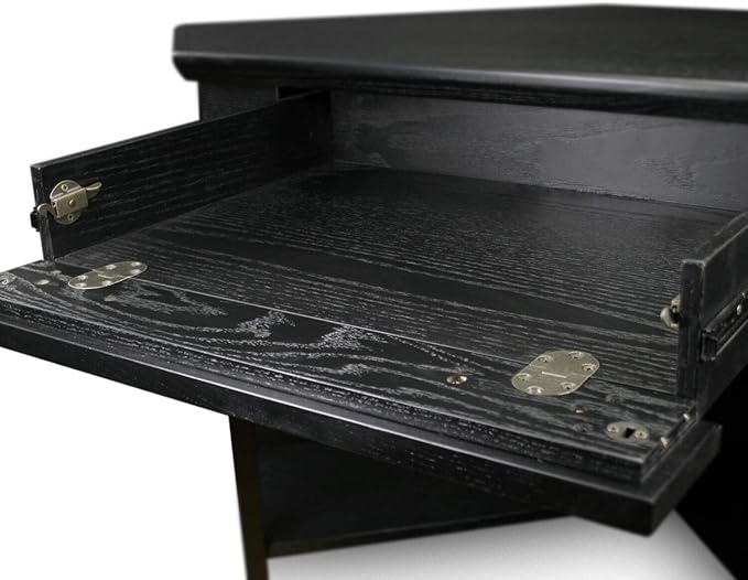 About This Hand applied black finish on hardwood solids Pull out drawer with a drop front lid for a laptop...