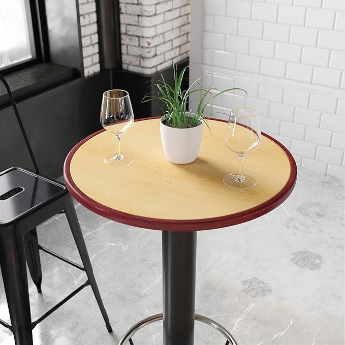 Flash Furniture Glenbrook 24'' Round 2-Tone High-Gloss Cherry / Mahogany Resin Table Top with 2'' Thick Drop-Lip