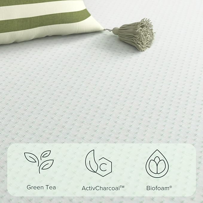About This Green Tea-infused Memory Foam With a Soft, Poly Jacquard Cover THE RIGHT COMBINATION - Refreshing green tea and...