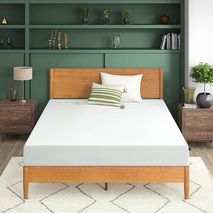 ZINUS 8 Inch Green Tea Memory Foam Mattress, Queen, Fiberglass Free, Patented Custom Contour Support, Sturdy Base Foam, CertiPUR-US Certified, Mattress in A Box, White