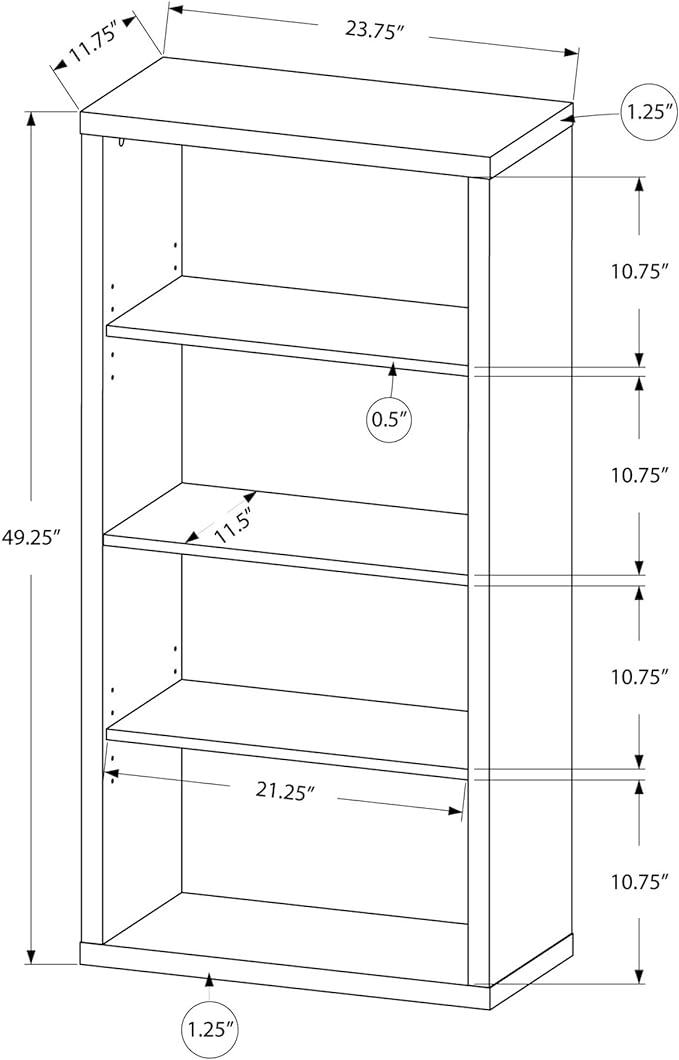 Monarch Specialties 7059 Bookshelf, Bookcase, Etagere, 5 Tier, H, Office, Bedroom, Laminate, White, Contemporary, Modern Bookcase-48 H Adjustable Shelves, 48-Inch