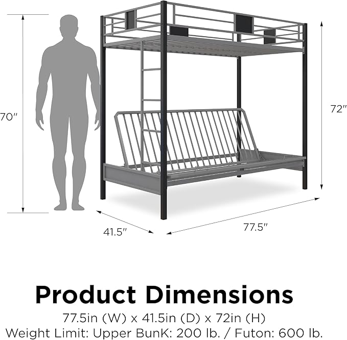 About This Clean contemporary design that will compliment any room decor Accommodates one twin and one futon mattress - sold...