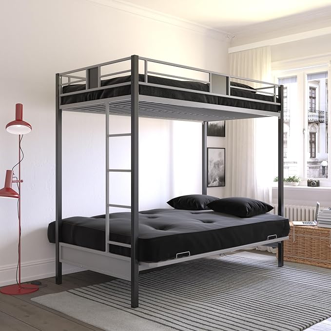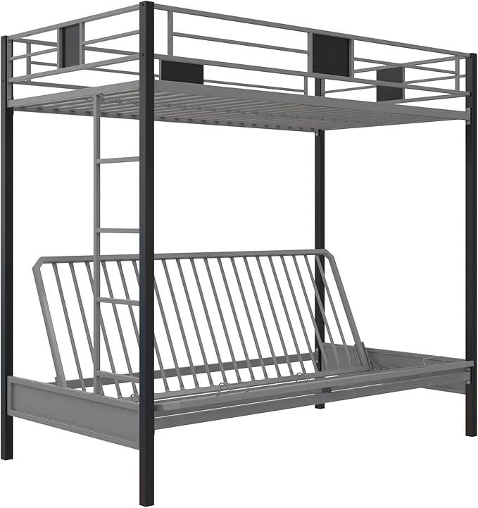 DHP Silver Screen Metal Bunk Bed with Ladder, Black, Twin