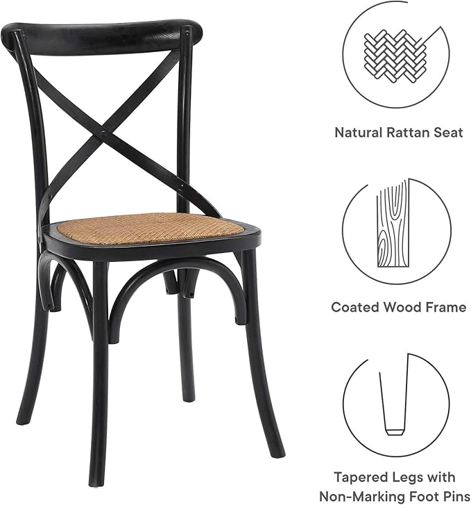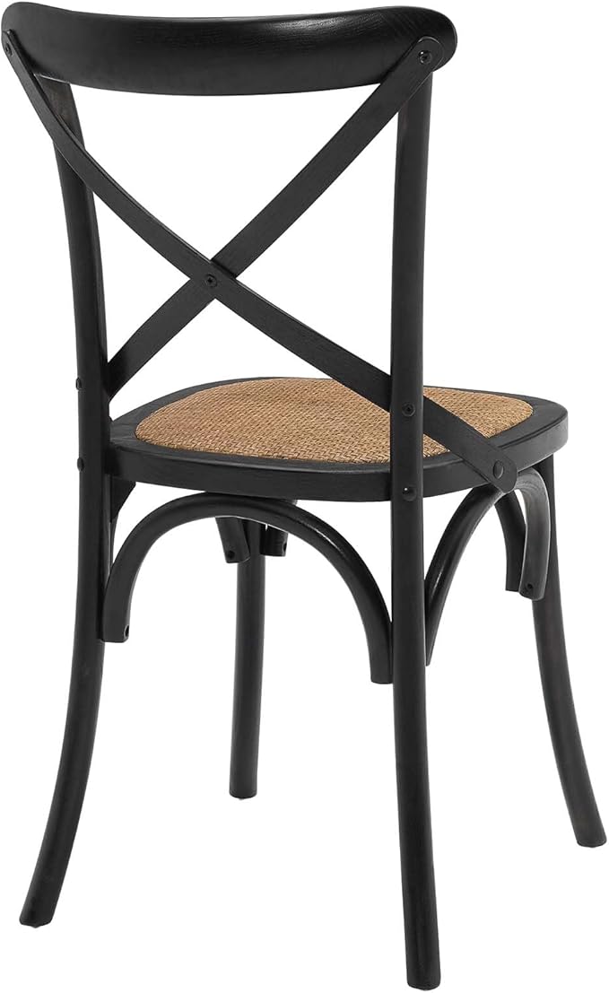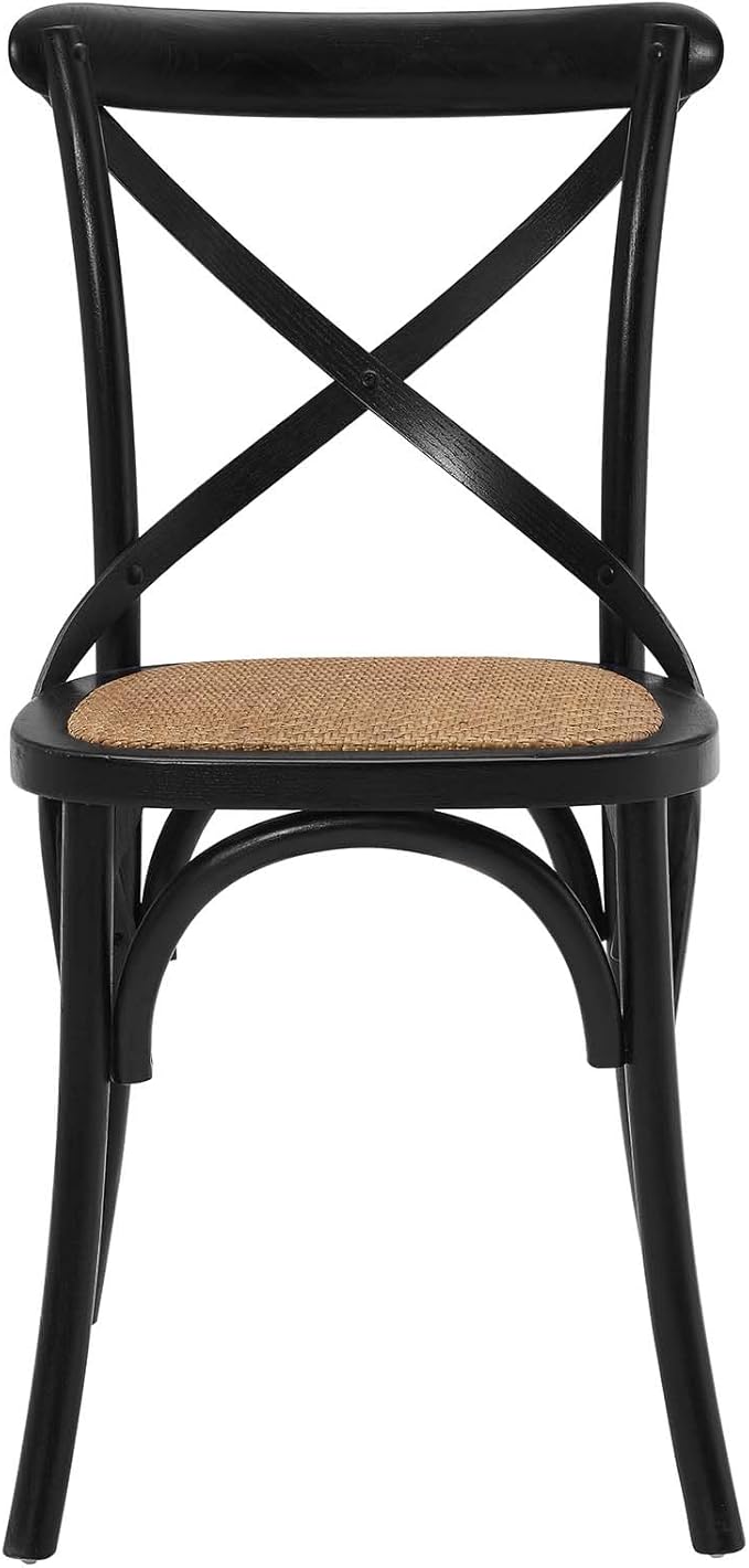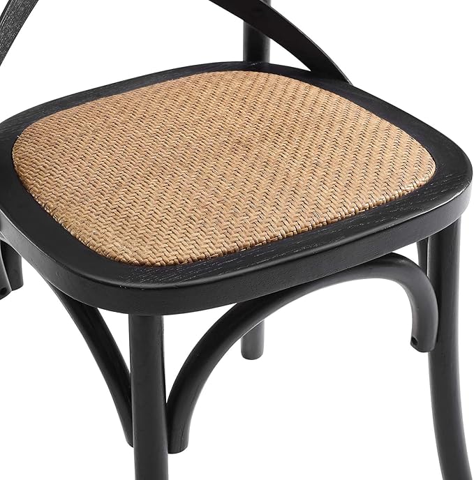 Modway Gear Rustic Modern Farmhouse Elm Wood Rattan Dining Chair in Black