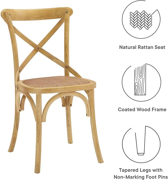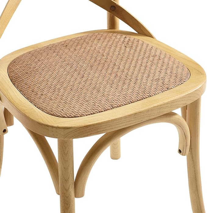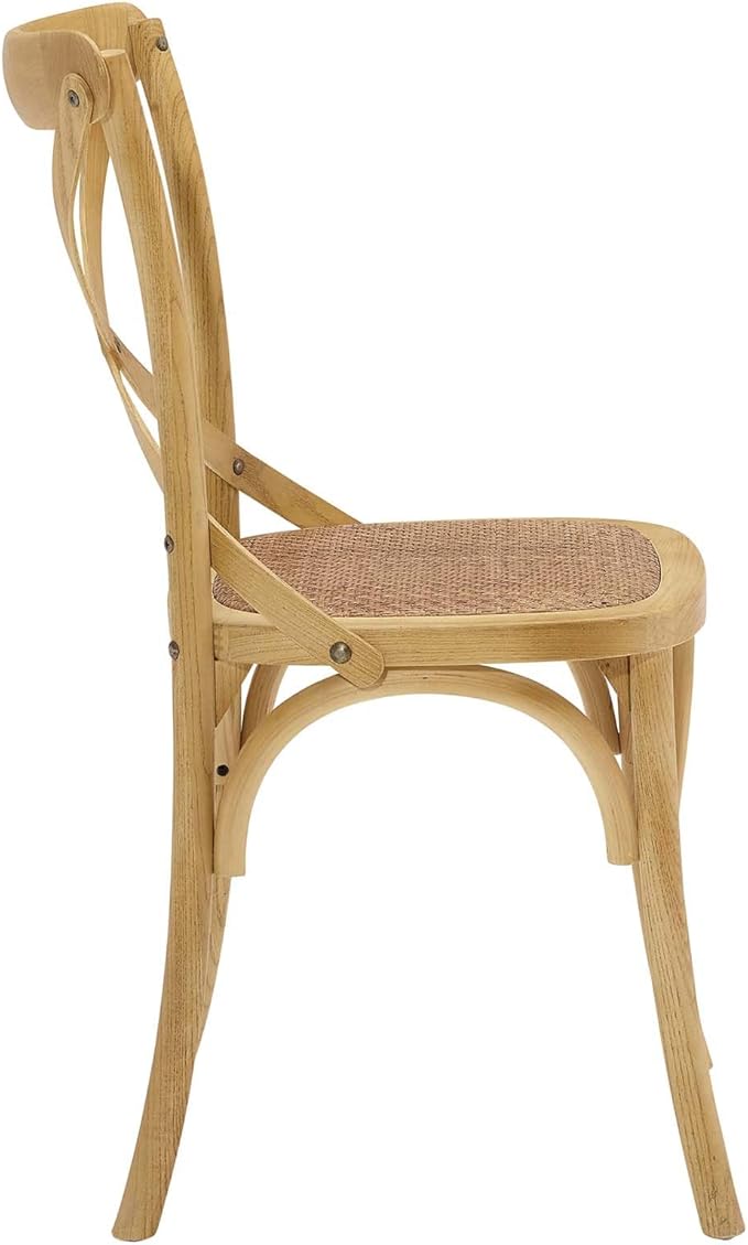 Modway Gear Rustic Modern Farmhouse Elm Wood Rattan Dining Chair in Natural