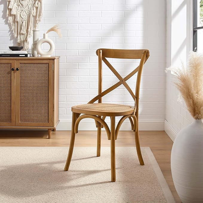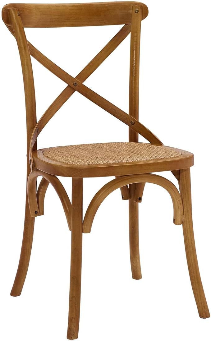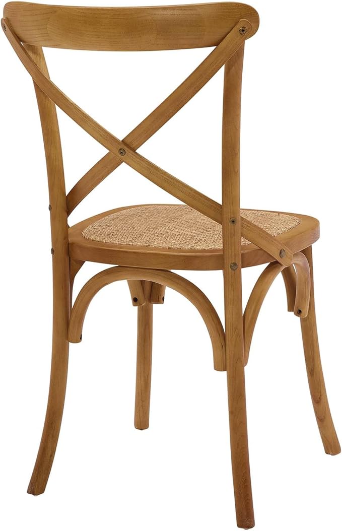 Modway Gear Rustic Modern Farmhouse Elm Wood Rattan Dining Chair in Walnut