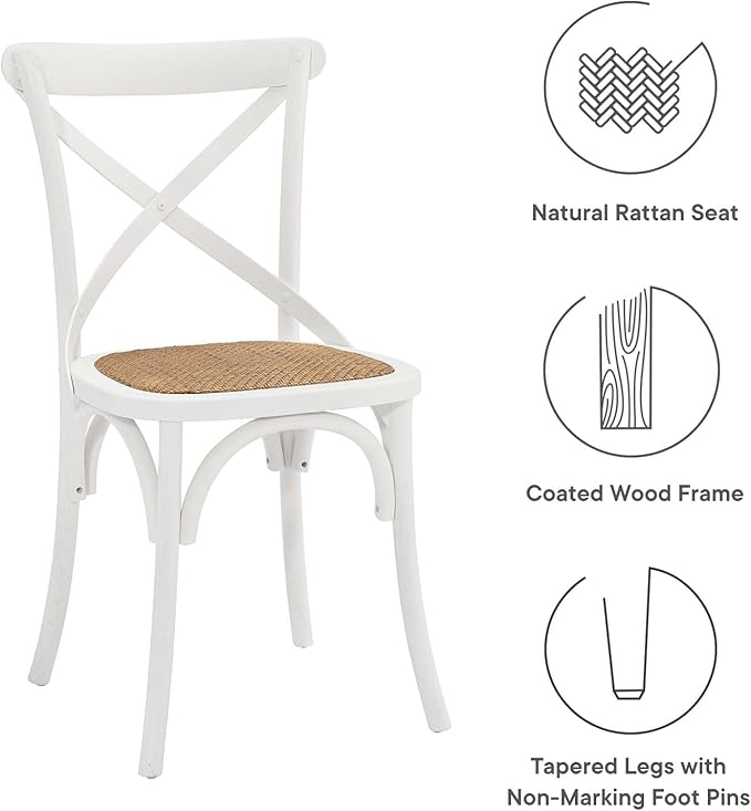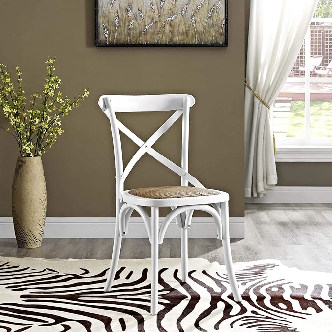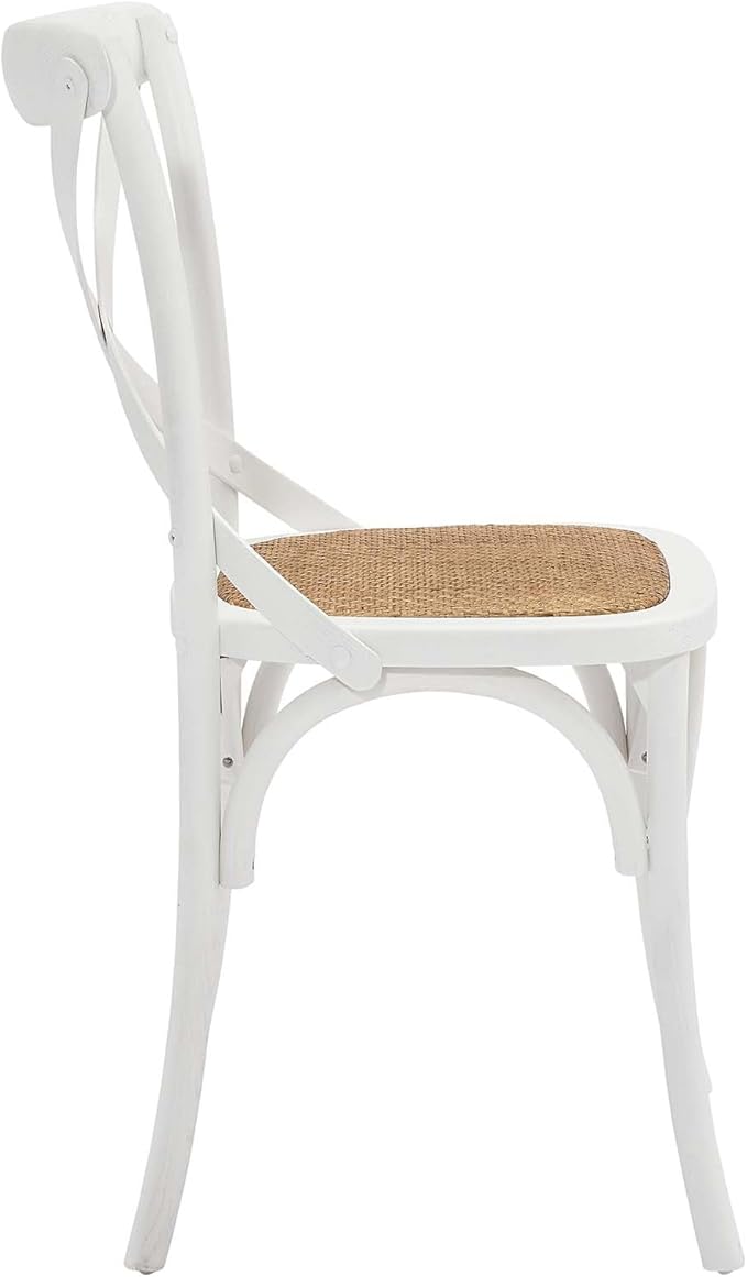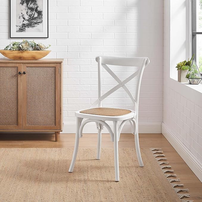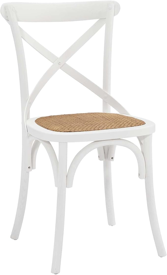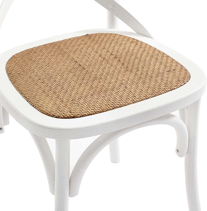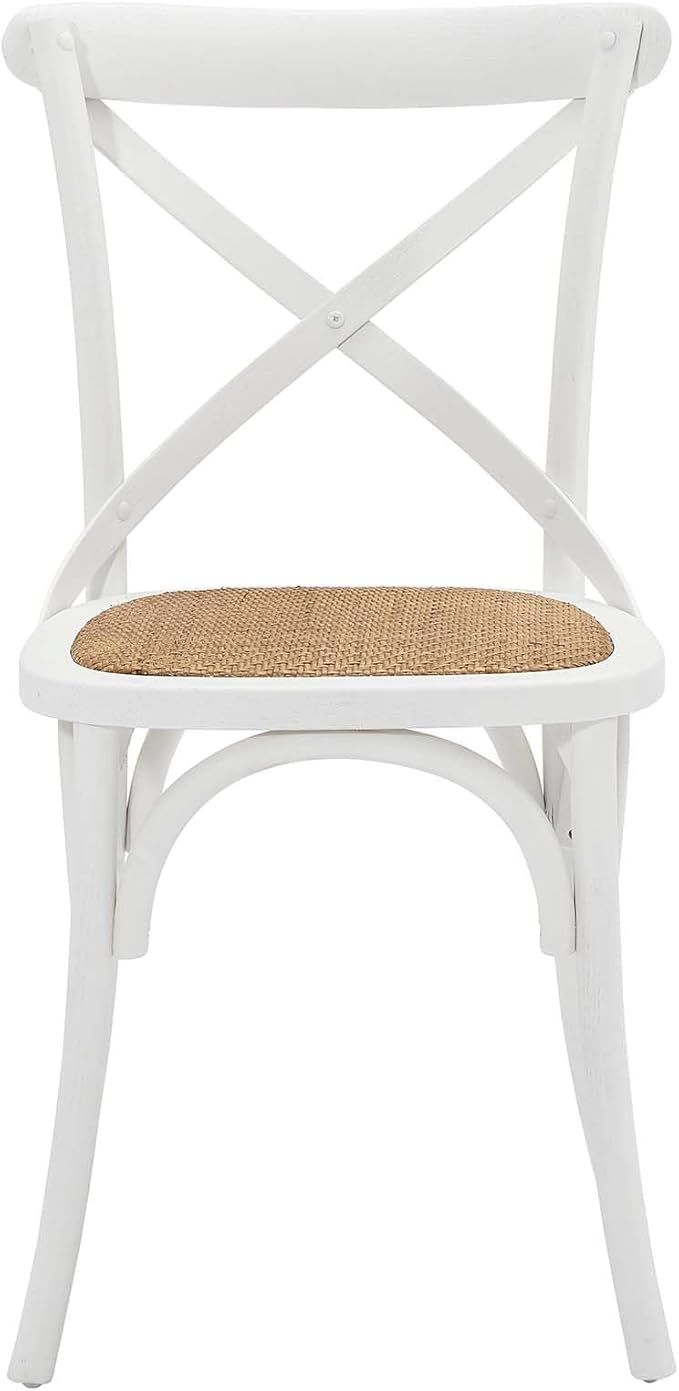 Modway Gear Rustic Modern Farmhouse Elm Wood Rattan Dining Chair in White