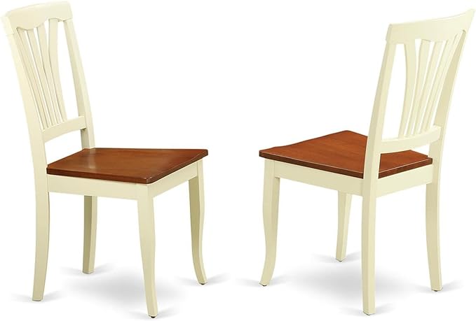 East West Furniture Avon Kitchen Dining Slat Back Solid Wood Seat Chairs, Set of 2, Buttermilk & Cherry