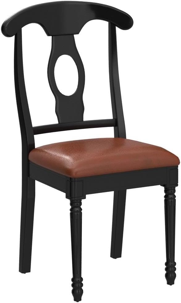 East West Furniture Kenley Dining Room Faux Leather Upholstered Wood Chairs, Set of 2, Black