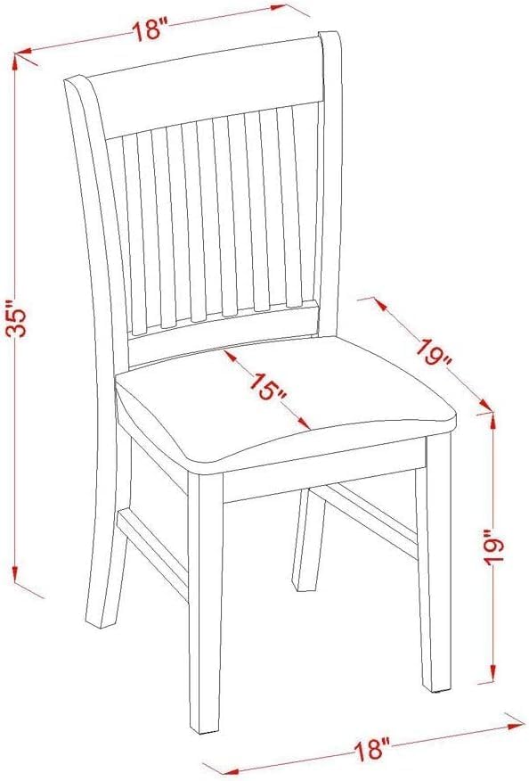 East West Furniture Norfolk Dining Room Slat Back Solid Wood Seat Chairs, Set of 2, Mahogany