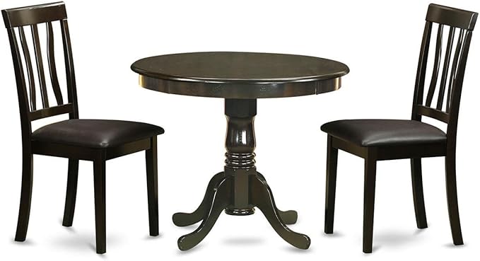 East West Furniture ANTI3-CAP-LC Antique 3 Piece Kitchen Set Contains a Round Table with Pedestal and 2 Faux Leather Dining Room Chairs, 36x36 Inch
