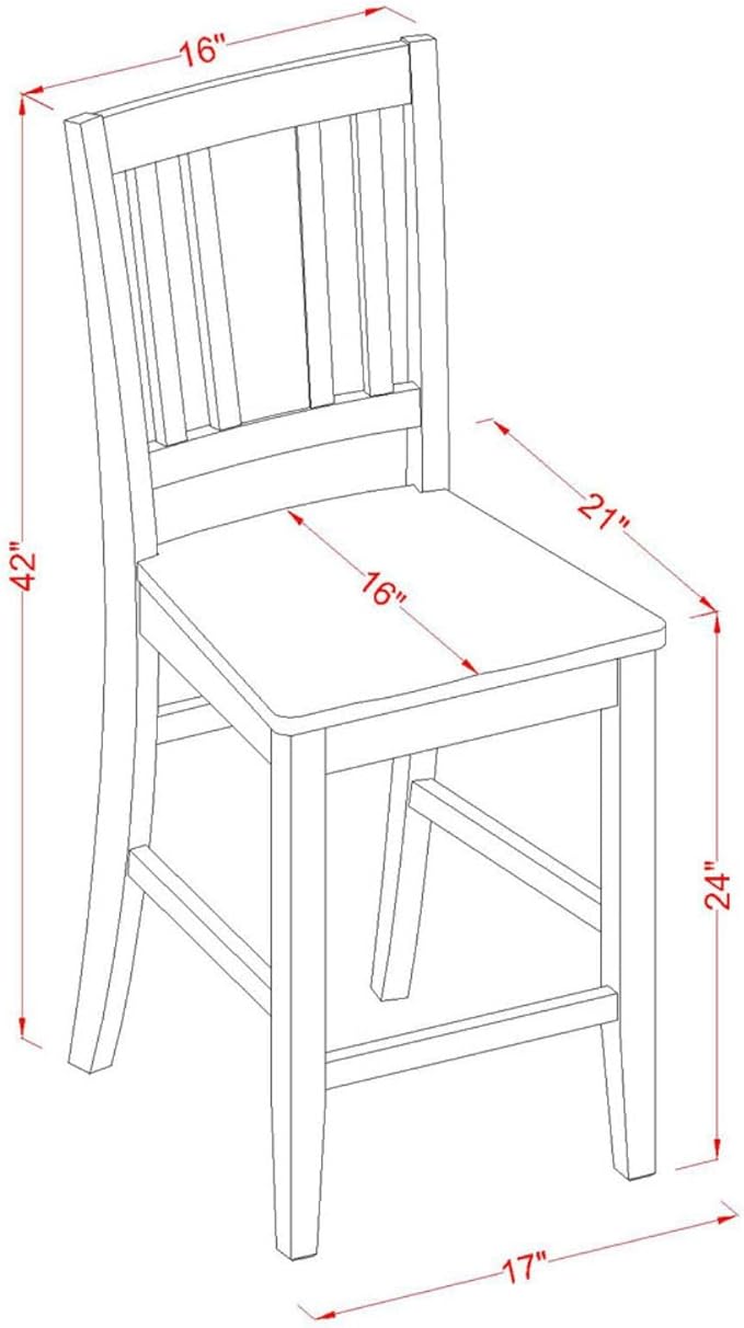 East West Furniture BUCK3-MAH-W Buckland 3 Piece Counter Height Set Contains a Rectangle Kitchen Table and 2 Dining Room Chairs, 30x48 Inch