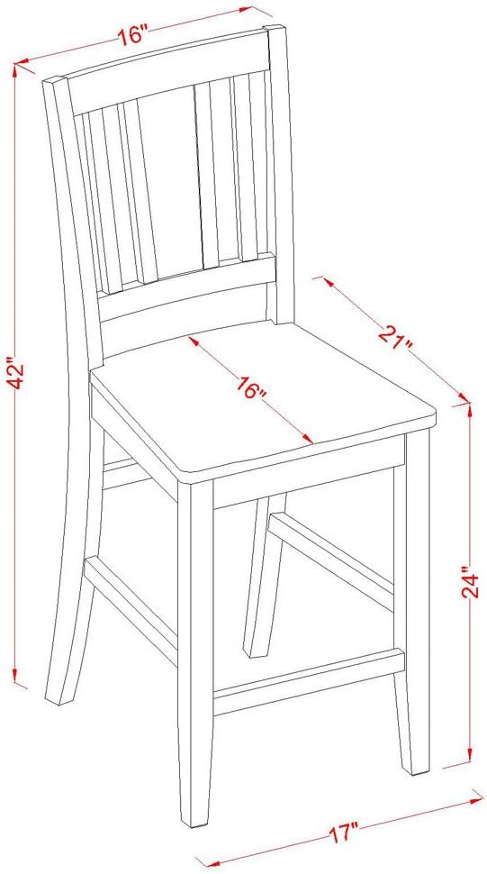 East West Furniture BUCK5-MAH-W Buckland 5 Piece Counter Height Set Includes a Rectangle Dining Room Table and 4 Wood Seat Chairs, 30x48 Inch