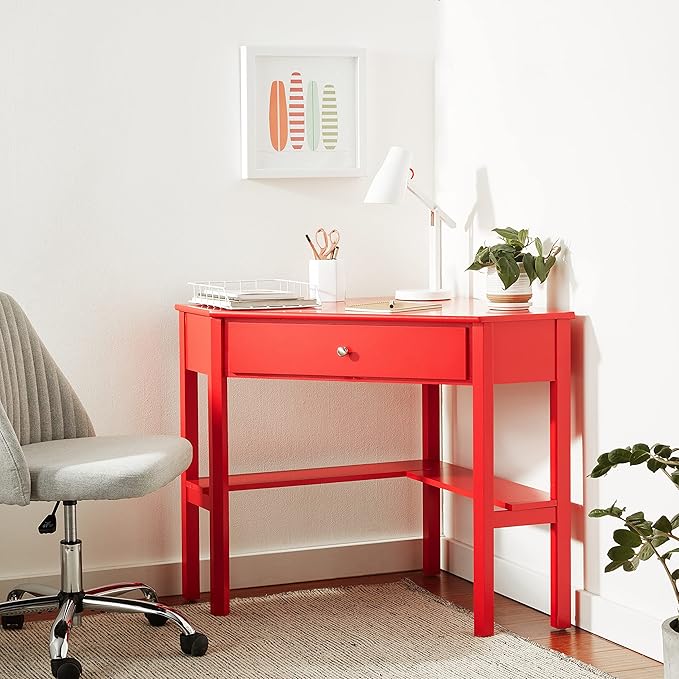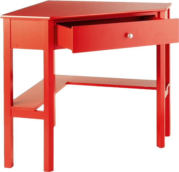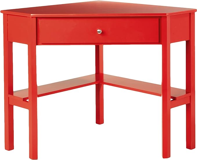 Target Marketing Systems Ellen Corner Desk Drawer and One Storage Shelf For Living Room, Bedroom, or Home Office, Small Computer Table, 42" W x 30" H, Red