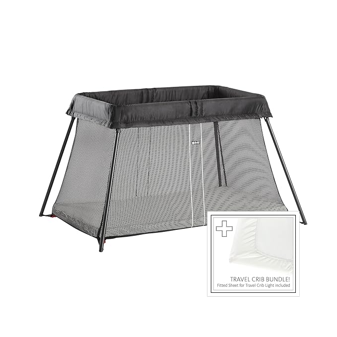 BabyBjörn Travel Crib Light + Fitted Sheet Bundle Pack, Black, One Size (640001US)
