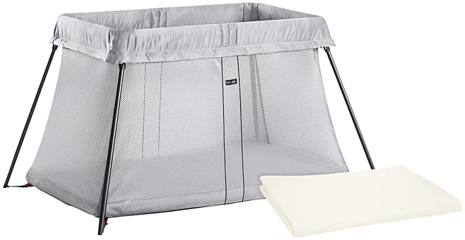 BABYBJORN Travel Crib Light - Silver + Fitted Sheet Bundle Pack