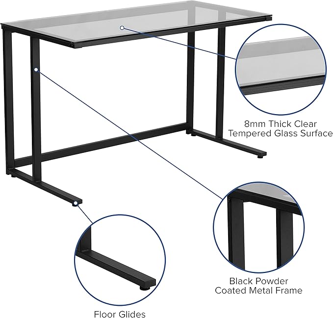 Flash Furniture Singleton Glass Desk with Black Pedestal Metal Frame