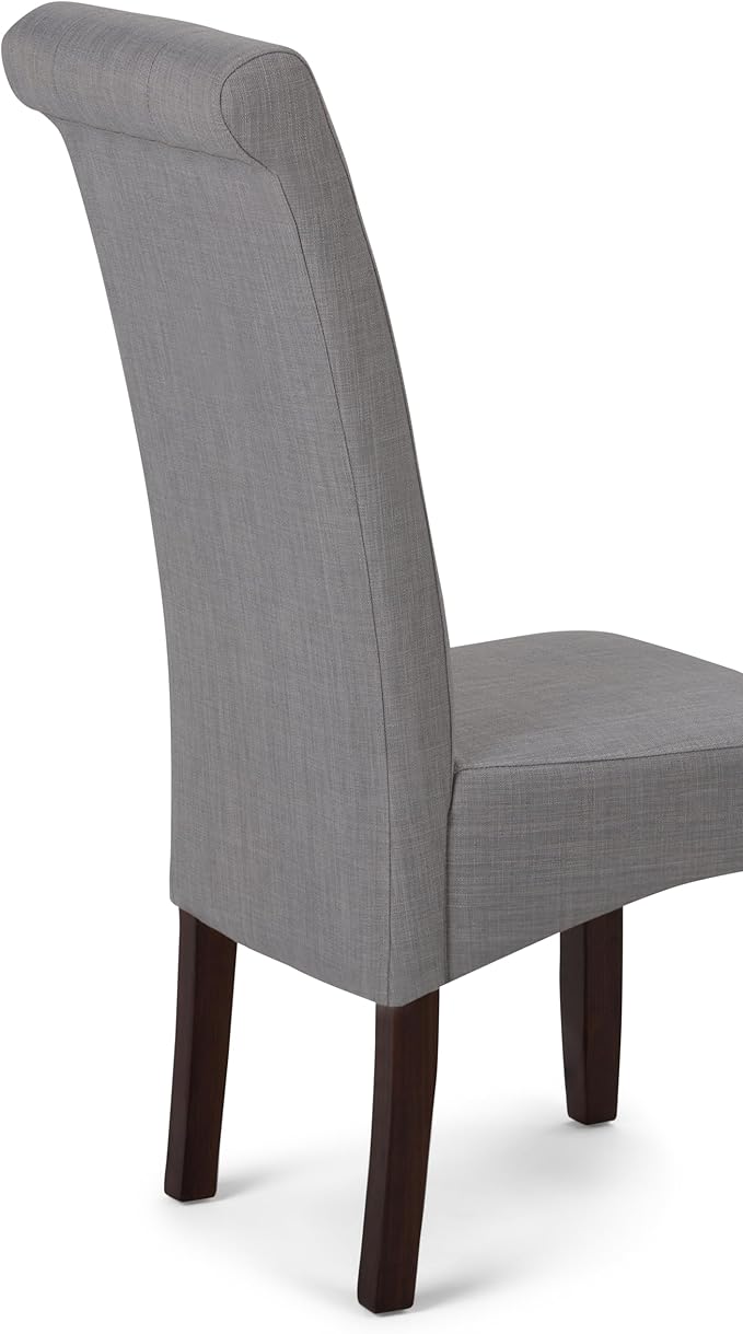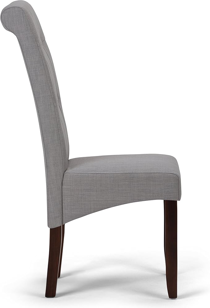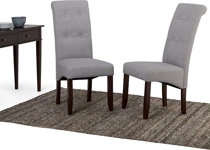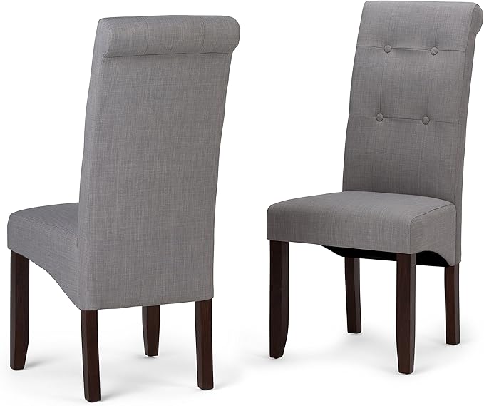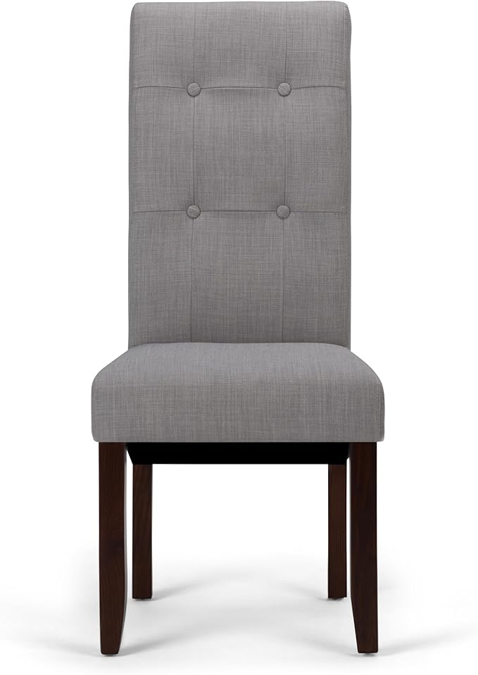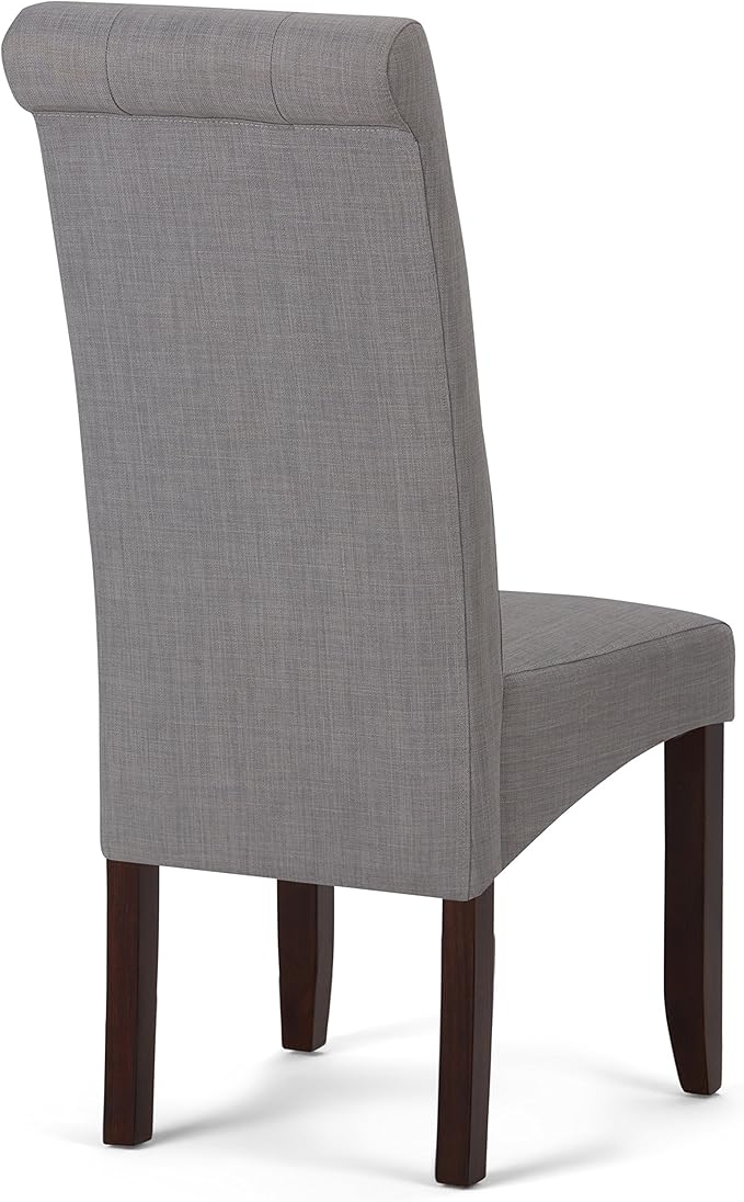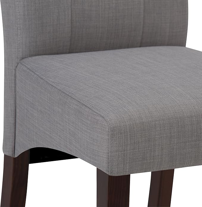 SIMPLIHOME Cosmopolitan Parson Dining Chair (Set of 2), Dove Grey Linen Look Fabric and SOLID WOOD, Square, Upholstered, For the Dining Room, Transitional Modern