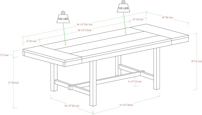 About This Dimensions: 30" H x 68-96" L x 38" W Seats 8 people comfortably when fully extended Solid wood...
