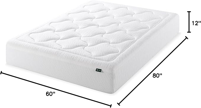 ZINUS 12 Inch Cloud Memory Foam Mattress, Queen, Fiberglass Free, Pressure Relieving, Mattress in A Box, CertiPUR-US Certified, White