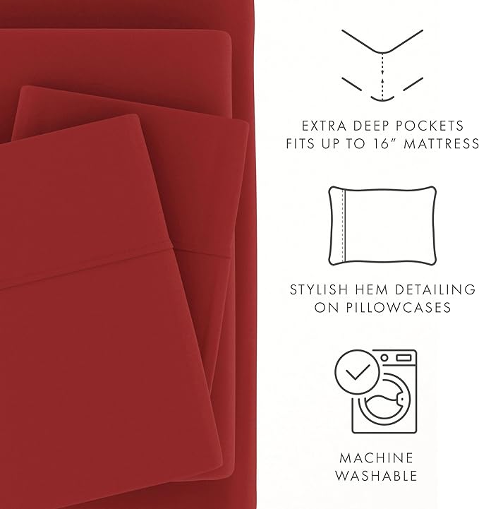 Linen Market Bed Sheets for Full Size Bed (Burgundy) - Sleep Better Than Ever with These Soft and Cooling Full Sheets - Deep Pocket Fits 16" Thick Beds - 4 Piece Full Sheet Set