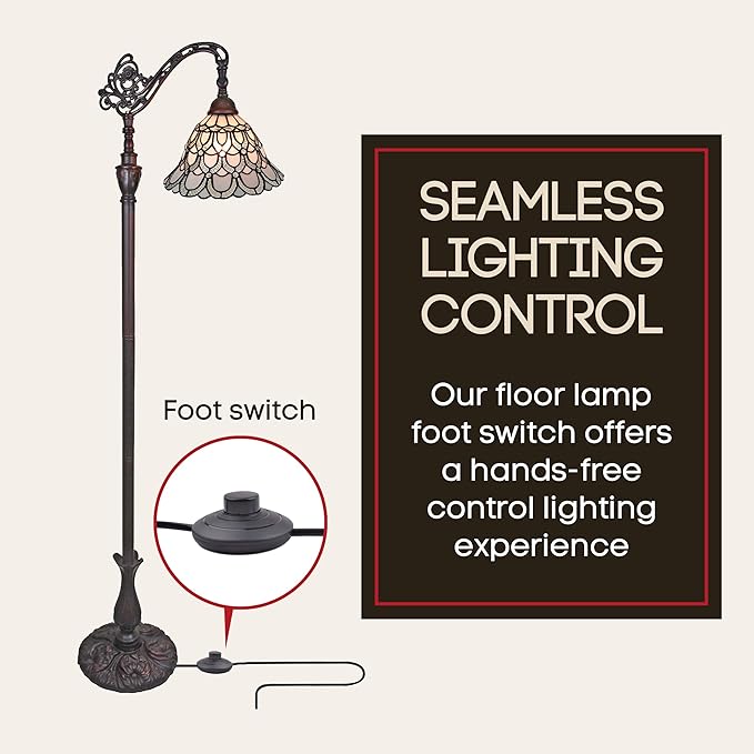 Amora Tiffany Floor Lamp Torchiere - Arched Style Peacock Floor Lamp - 62” Tall Peacock Floor Stained Glass Lamp - Tiffany Floor Lamps for Living Room