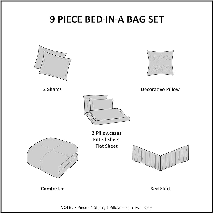 About This 100% Microfiber Comforter Set, 100% Cotton Sheet Set 9 Piece Bed in a Bag Set - Elevate your...
