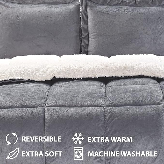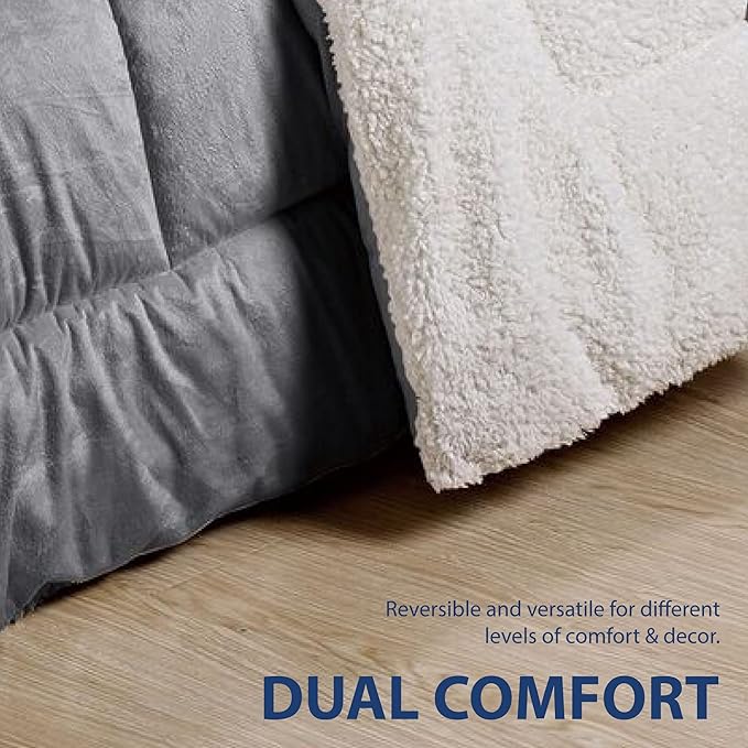 Cathay Home Twin Comforter Set: Ultra Soft and Plush Reversible Micromink and Sherpa 2-Piece Bedding Set, Pewter, Twin (66" x 86")