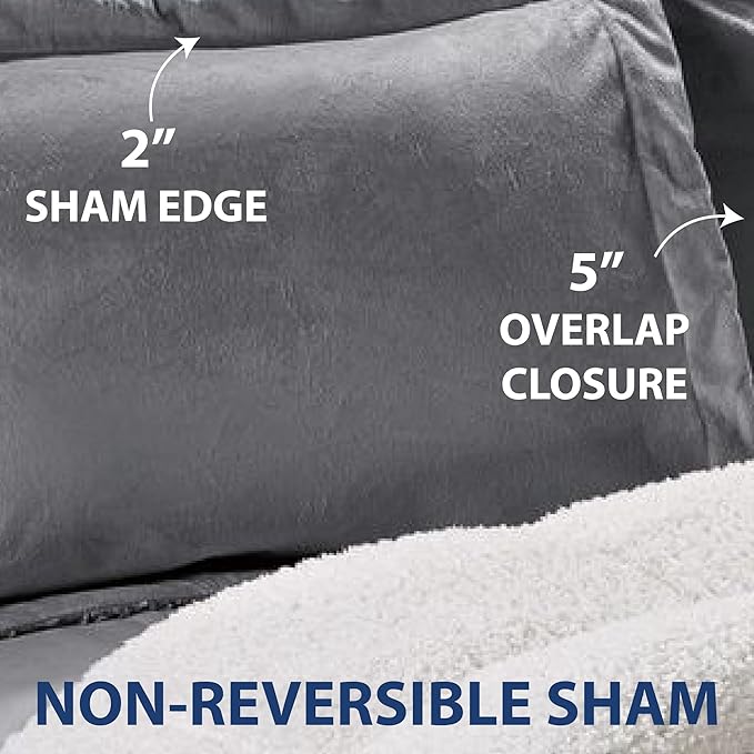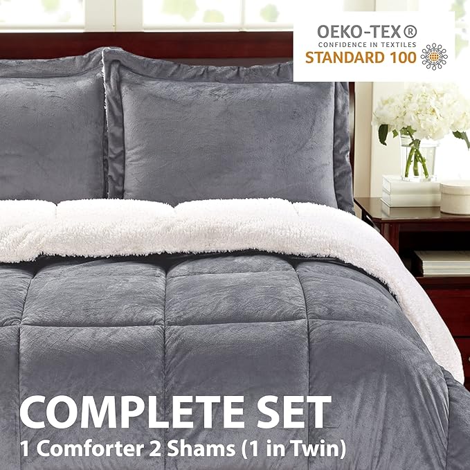 Cathay Home King Comforter Set: Ultra Soft and Plush Reversible Micromink and Sherpa 3-Piece Bedding Set, Pewter, King (102" x 90")