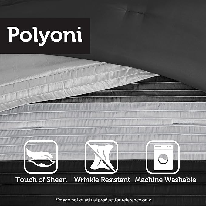 Madison Park Amherst Faux Silk Comforter Set-Casual Contemporary Design All Season Down Alternative Bedding, Matching Shams, Bedskirt, Decorative Pillows, Full(82"x90"), Black, 7 Piece (MP10-2587)
