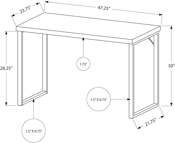 Monarch Specialties 7155 Computer Desk, Home Office, Laptop, 48" L, Work, Metal, Laminate, Brown, Grey, Contemporary, Modern Desk-48 L Dark Taupe Silver, 47.25" L x 23.75" W x 30" H