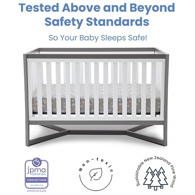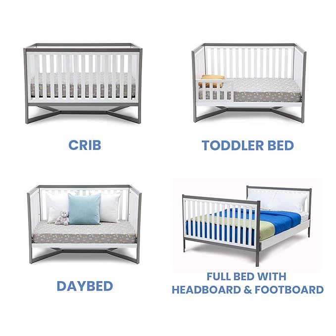 Delta Children Tribeca 4-in-1 Convertible Crib, White/Grey