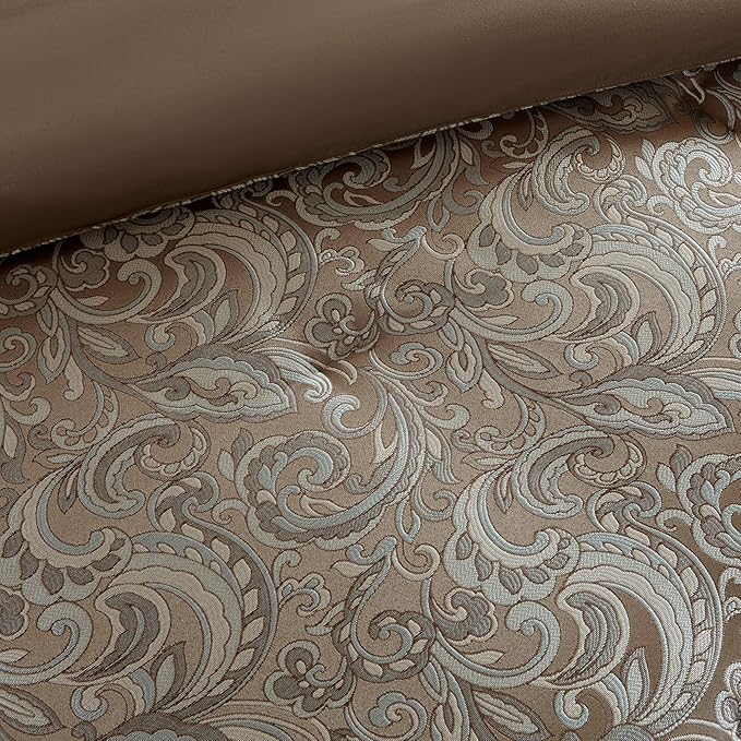 Madison Park Essentials Brystol 24 Piece Room in a Bag Faux Silk Comforter Jacquard Paisley Design Matching Curtains Down Alternative Hypoallergenic All Season Bedding-Set, Cal King, Blue