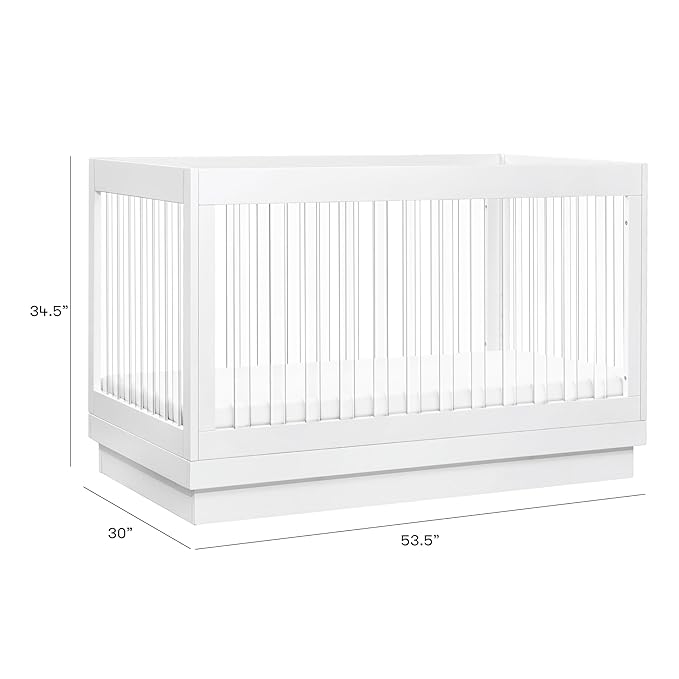 Babyletto Harlow Acrylic 3-in-1 Convertible Crib with Toddler Bed Conversion Kit in White with Acrylic Slats, Greenguard Gold Certified