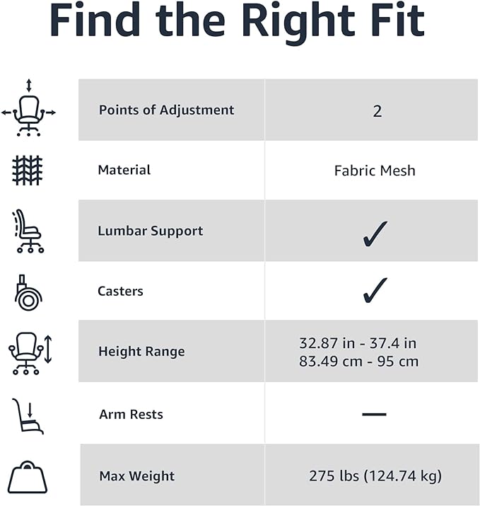 Amazon Basics Office Computer Task Desk Chair, Low-Back, Pneumatic Seat, Breathable Mesh, Adjustable, 21.25"D x 22.5"W x 38"H, Swivel, 270 Pound Capacity, Blue Nylon