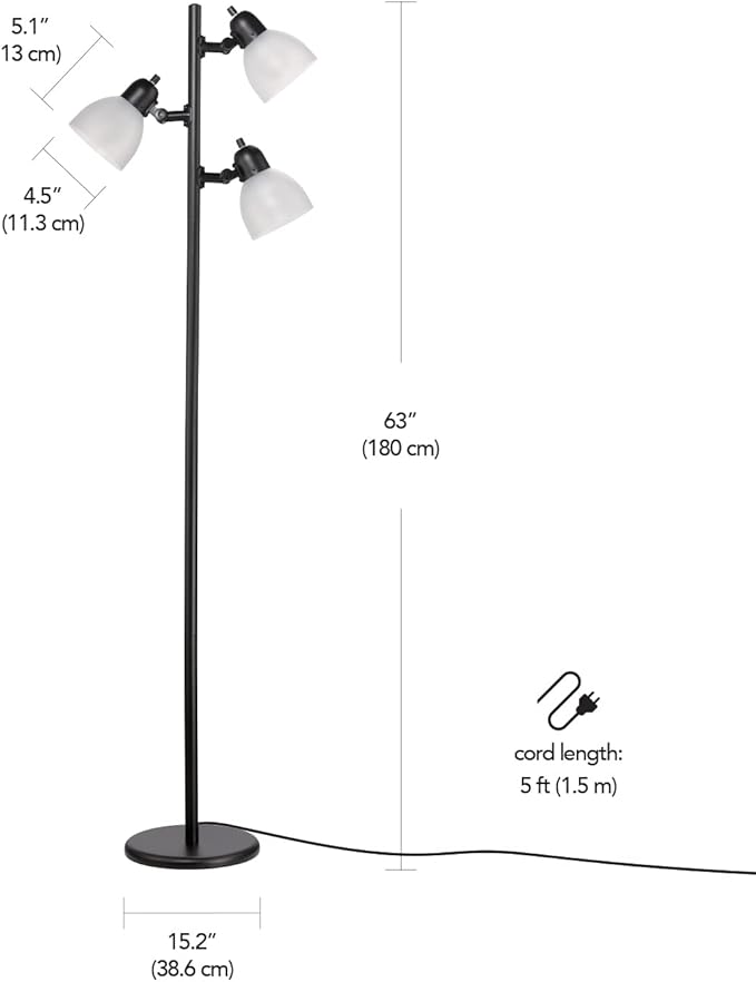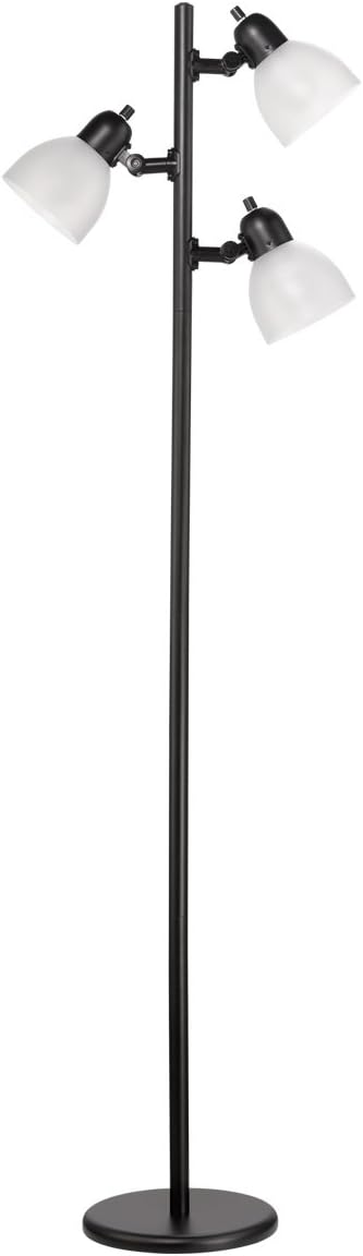 Globe Electric 12719 Life 63" 3-Light Floor Lamp, Matte Plastic, LED Bulbs Included, Black with Frosted Shade