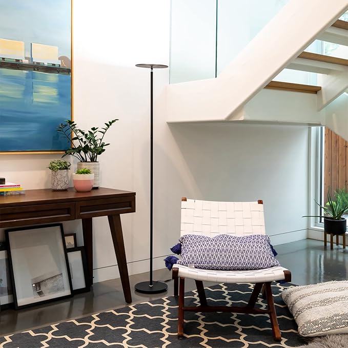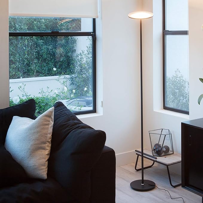 Brightech Sky LED Torchiere Super Bright Floor Lamp - Contemporary, High Lumen Light for Living Rooms & Offices - Dimmable, Indoor Pole Uplight for Bedroom Reading - Black