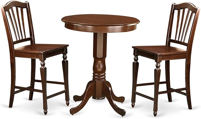 East West Furniture Eden 3 Piece Counter Height Set for Small Spaces Contains a Round Kitchen Table with Pedestal and 2 Dining Room Chairs, 30x30 Inch, Mahogany