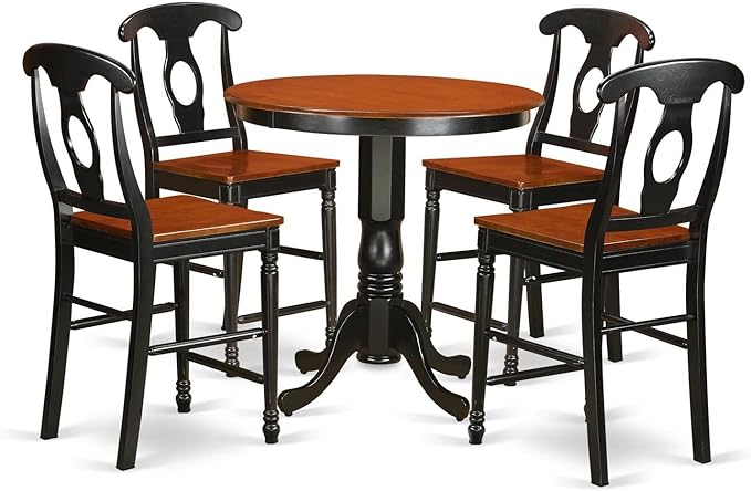 East West Furniture JAKE5-BLK-W 5 Piece Counter Height Pub Set Includes a Round Dining Table with Pedestal and 4 Dining Room Chairs, 36x36 Inch, Black & Cherry