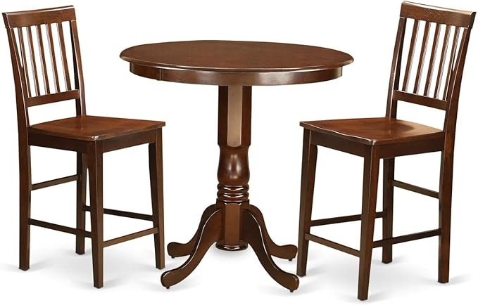 East West Furniture JAVN3-MAH-W 3 Piece Kitchen Counter Set for Small Spaces Contains a Round Dining Room Table with Pedestal and 2 Dining Chairs, 36x36 Inch, Mahogany