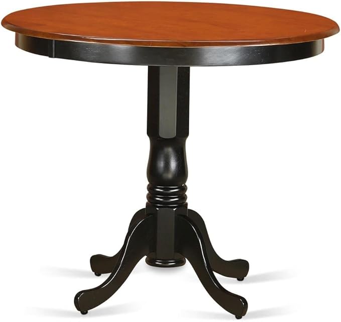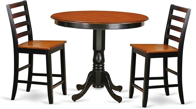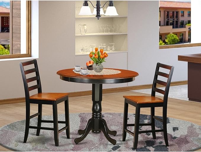 East West Furniture Trenton 3 Piece Counter Height Set for Small Spaces Contains a Round Dining Room Table and 2 Wooden Seat Chairs, 42x42 Inch, Black & Cherry