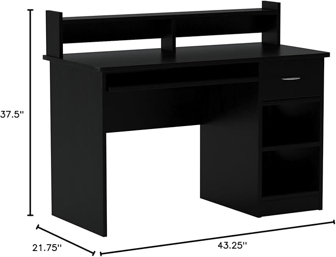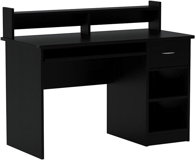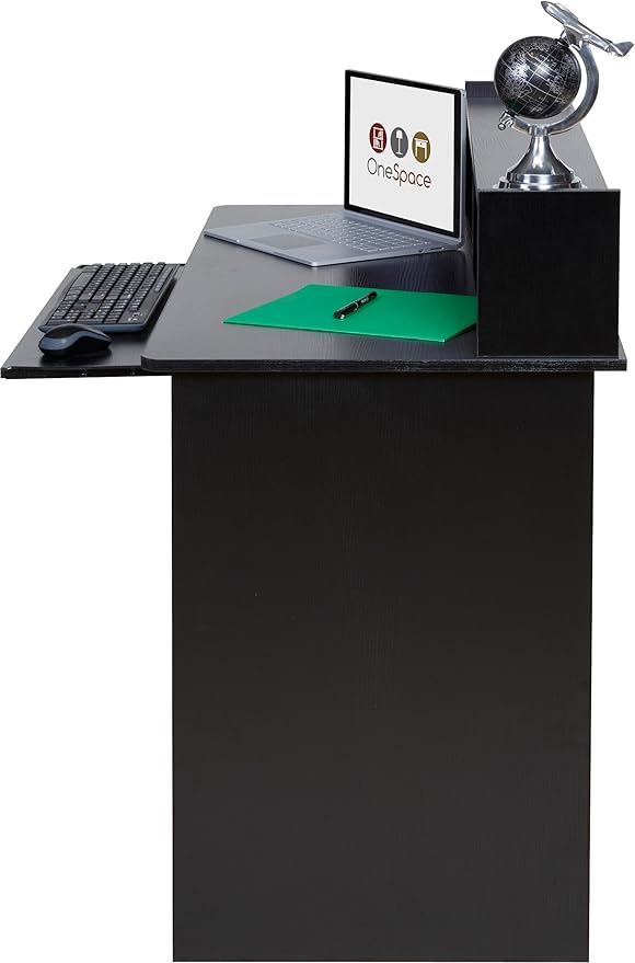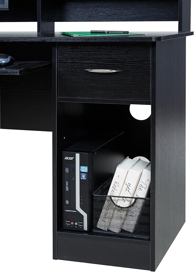 OneSpace Essential Computer Desk, Hutch with Pull-Out Keyboard, Black