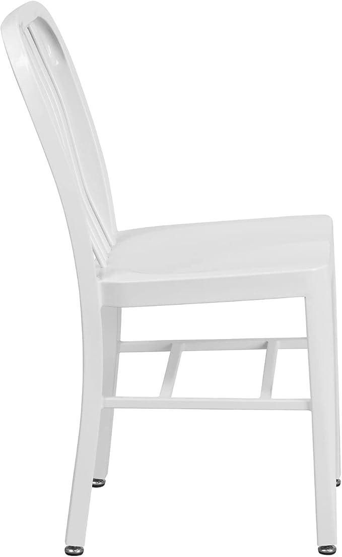 Flash Furniture Commercial Grade White Metal Indoor-Outdoor Chair