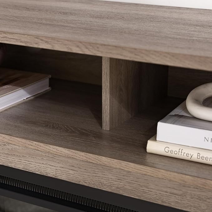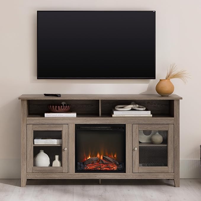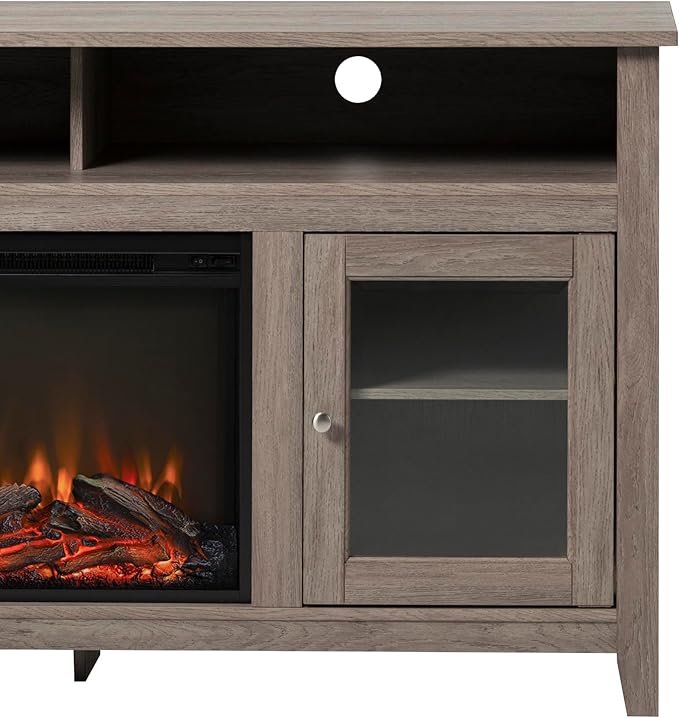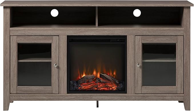 Walker Edison Glenwood Rustic Farmhouse Glass Door Highboy Fireplace TV Stand for TVs up to 65 Inches, 58 Inch, Driftwood