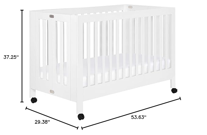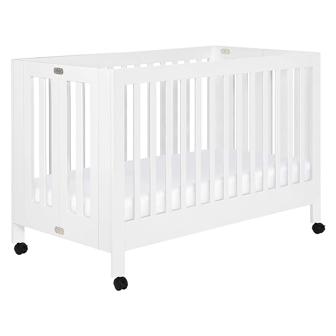 Babyletto Maki Full-Size 2-in-1 Portable Folding Crib with Toddler Bed Conversion Kit in White, Greenguard Gold Certified