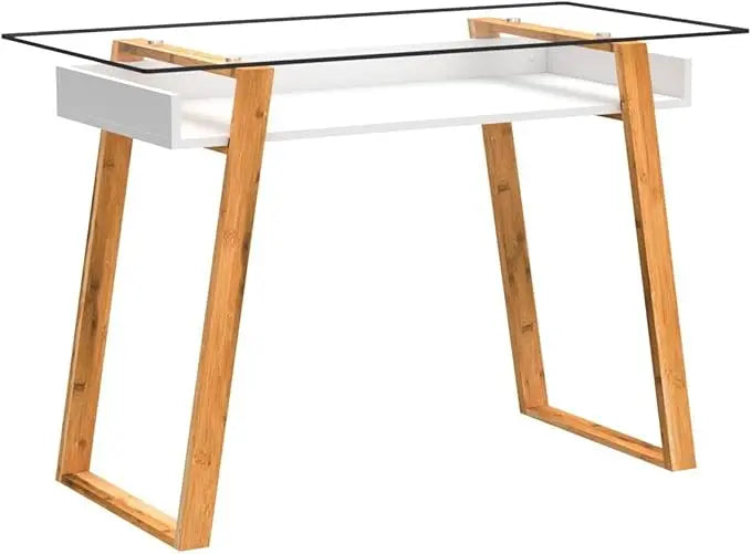 bonVIVO Massimo Small Desk - 43 Inch, Modern Computer Desk for Small Spaces, Living Room, Office and Bedroom - Study Table w/Glass Top and Shelf Space - White