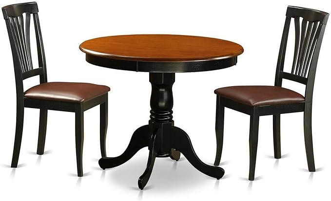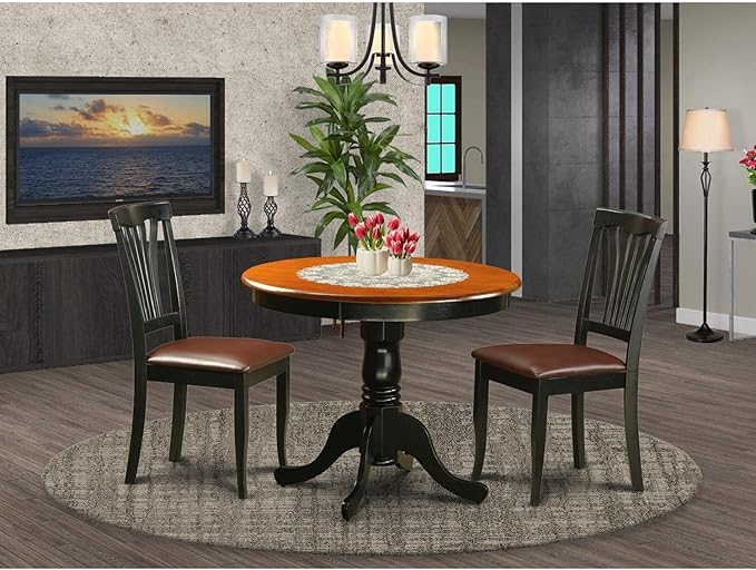 East West Furniture ANAV3-BLK-LC 3 Piece Room Furniture Set Contains a Round Kitchen Table with Pedestal and 2 Faux Leather Upholstered Dining Chairs, 36x36 Inch