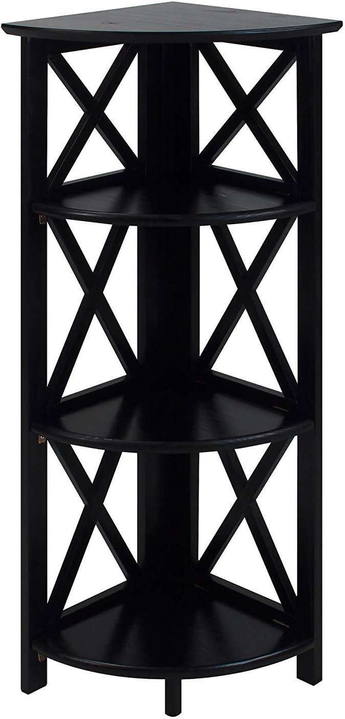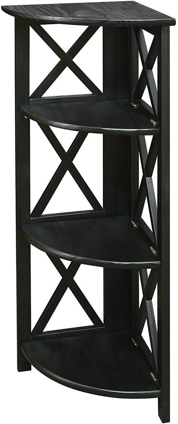 Casual Home Montego 3-Shelf Corner Folding Bookcase with Mantel Top, Black